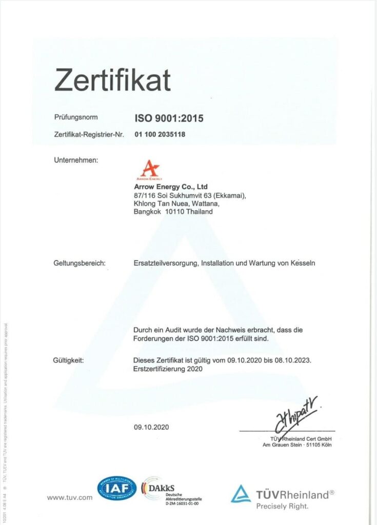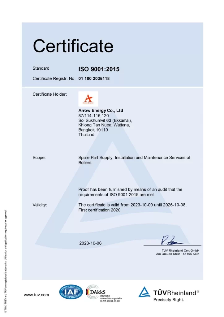 Arrow Energy Co., Ltd. is proud to operate under a standardized Quality Management System (QMS) certified by ISO 9001:2015 from TÜV Rheinland®. This certification underscores our dedication to:
